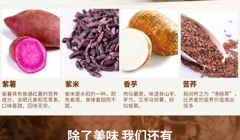 配料表:紫薯,紫米,香芋等,詳見包裝。