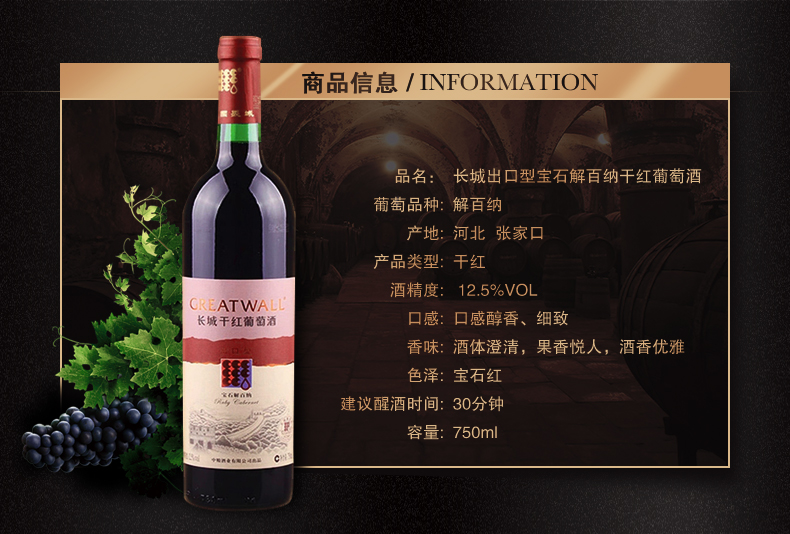 中糧長城干紅葡萄酒 出口型寶石解百納整箱紅酒