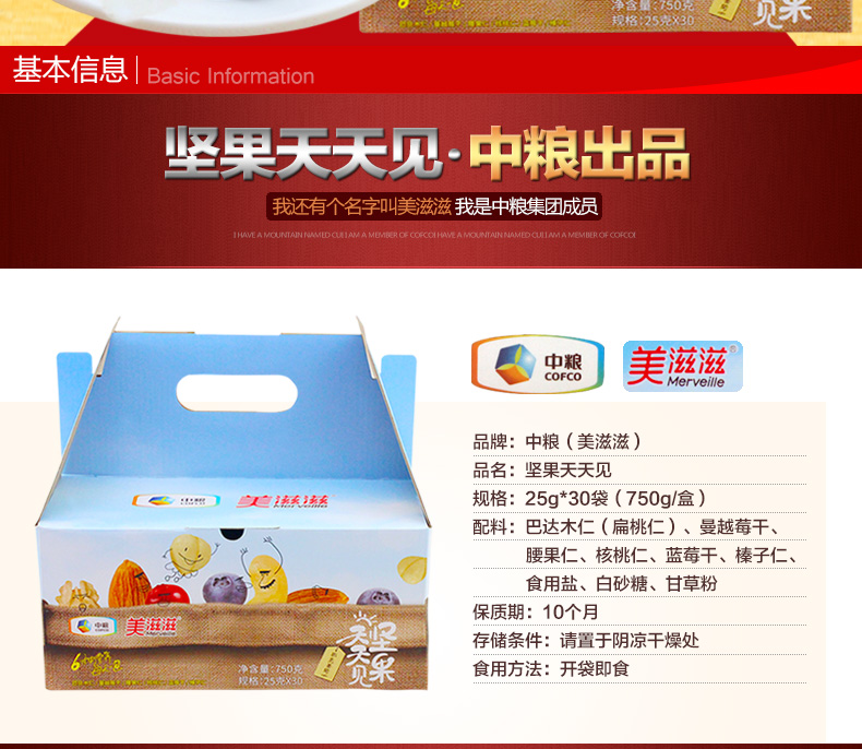 配料表:巴旦木仁(扁桃仁)、曼越莓干、腰果仁、核桃仁、藍莓干、榛子仁、食用鹽、白砂糖、甘草粉等