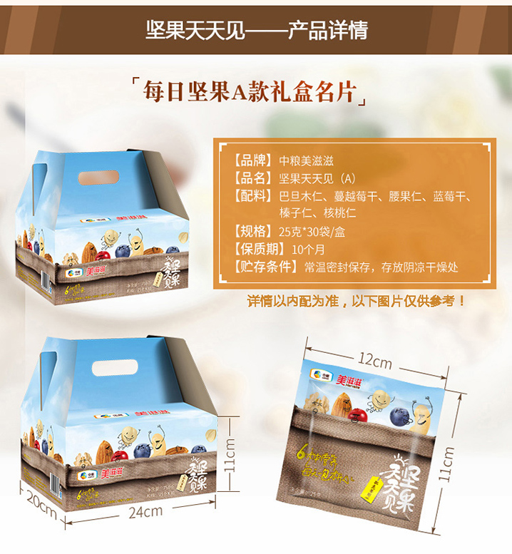 堅(jiān)果天天見A:巴旦木仁、蔓越梅干、腰果仁、藍(lán)莓干、榛子仁、核桃仁禮盒裝