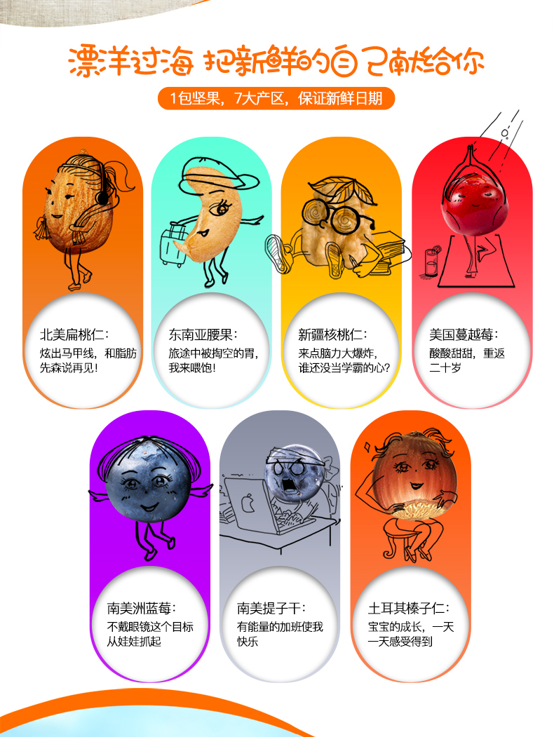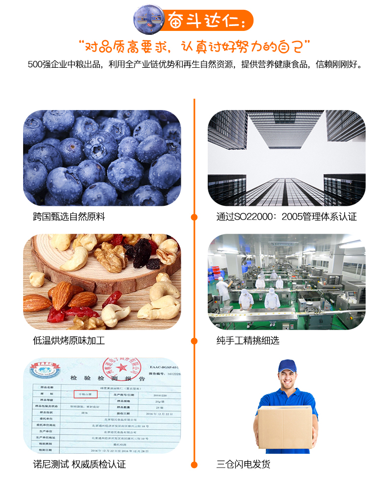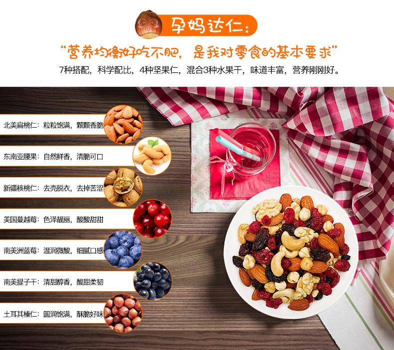 配料表:扁桃仁 腰果 核桃仁 榛子仁 藍莓干 蔓越莓干 紅提干