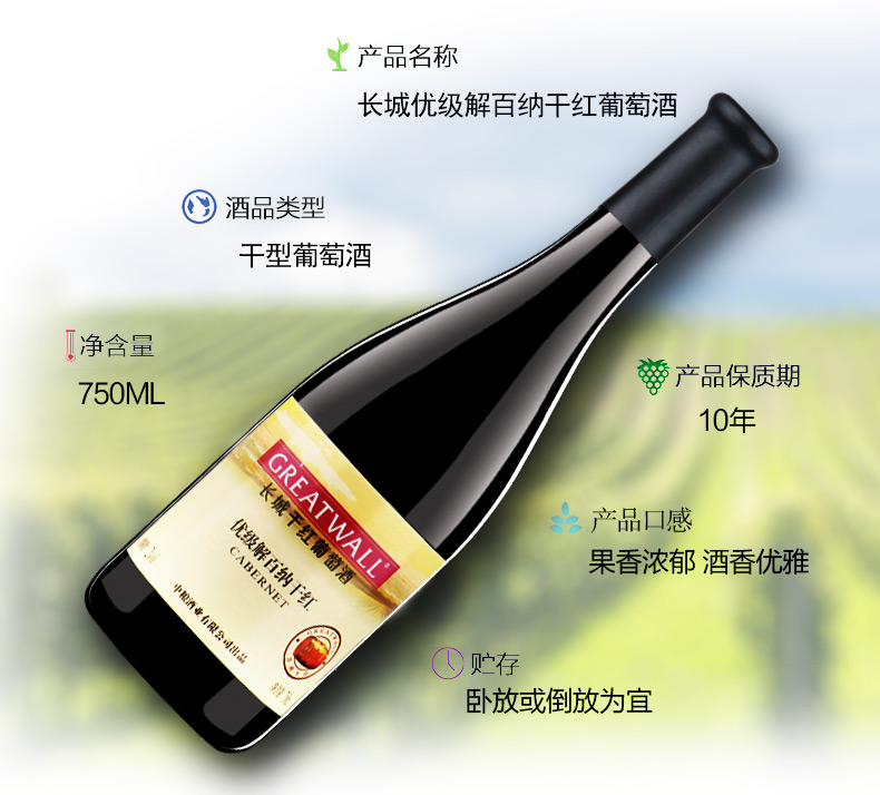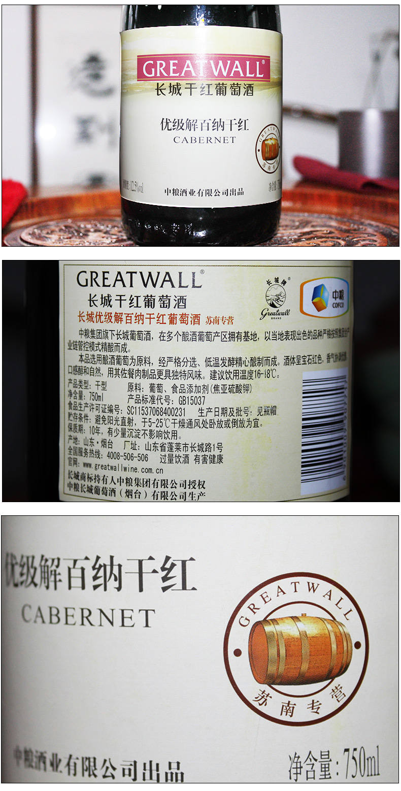 中糧長城紅酒干紅葡萄酒優(yōu)級解百納750ml*6 國產(chǎn)整箱