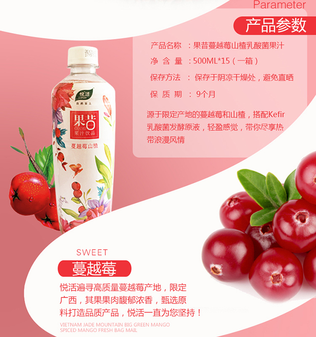 名稱:中糧悅活果昔蔓越莓山楂乳酸菌飲料|中糧悅活果昔芒果百香果乳酸菌飲料