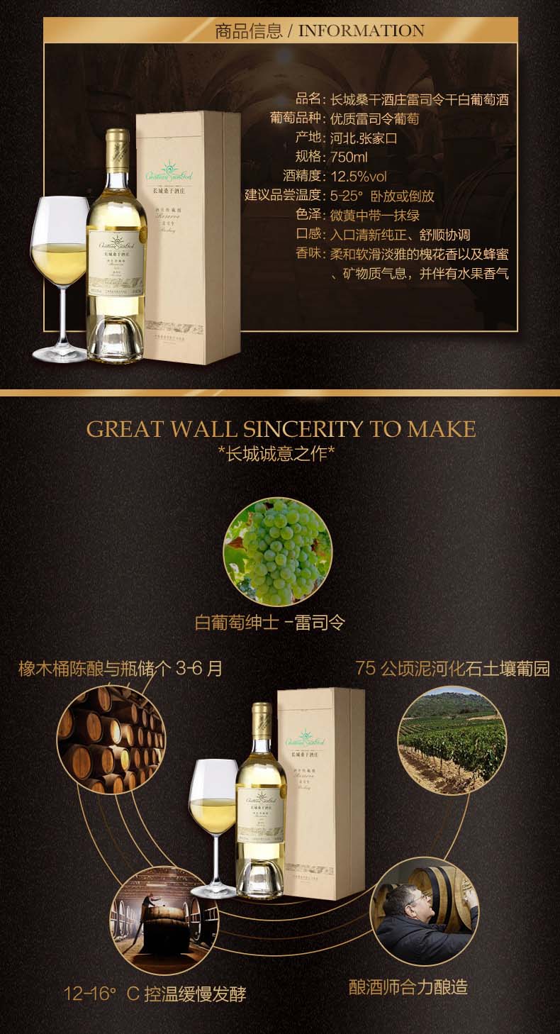 長(zhǎng)城葡萄酒桑干酒莊 雷司令干白