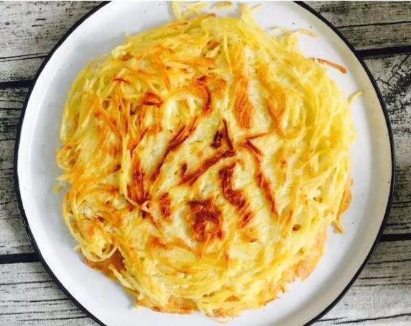 做法:先蒸土豆,洗凈去皮切片,隔水蒸熟;然后擦一點(diǎn)胡蘿卜絲;