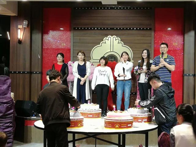 總裁辦領(lǐng)導(dǎo)們?yōu)檫^生日的伙伴們準(zhǔn)備了生日驚喜,張總、崔總、趙總發(fā)表了祝福講話,在總裁辦和各地市場精英祝福的環(huán)繞下,臺上伙伴感動不已!