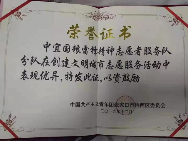 張家口中宜國(guó)糧雷鋒精神志愿者服務(wù)隊(duì)喜獲殊榮