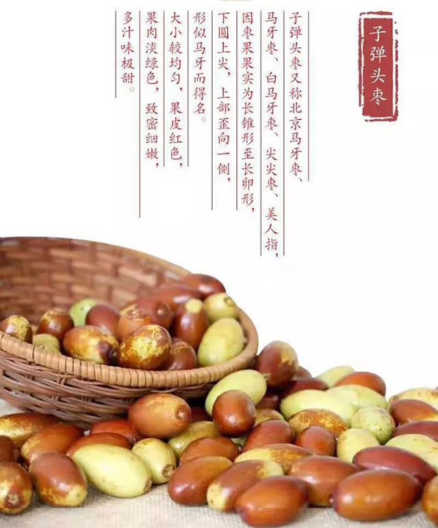 子彈頭棗又稱北京馬牙棗、馬牙棗、白馬牙棗、尖尖棗、美人指,因棗果果實為長錐