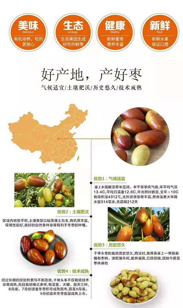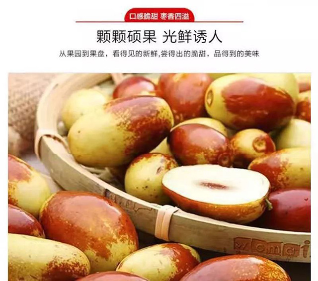 形至長卵形,下圓上尖,上部歪向一側(cè),形似馬牙而得名。大小較均勻,果皮紅色,果肉淡綠色,致密細嫩,多汁味極甜。鮮棗含糖量35.3%,每百克含維生素C332.86毫克,可食率92.94%,品質(zhì)上等 。