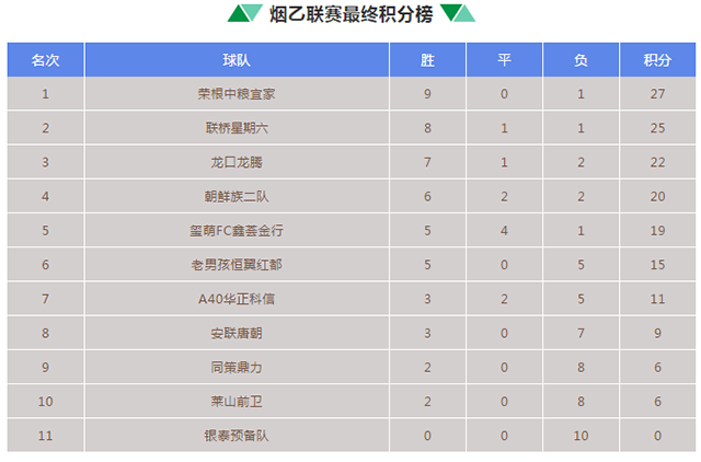 本賽季煙乙聯(lián)賽跨度長達(dá)3個(gè)月,在6月10日落下帷幕。