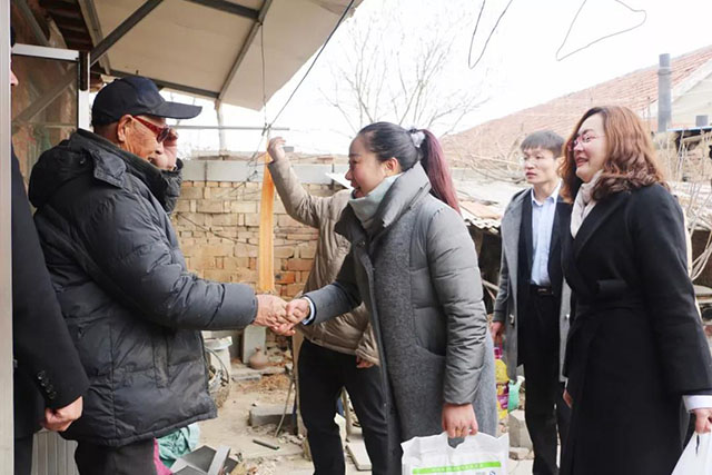 隨后,在前洼村鞠炳錦書記和周曉書記的帶領(lǐng)下,一行人又走訪慰問了困難戶,為他們送上了慰問品。在寒冷的冬天為貧困村民送上春天般的溫暖。