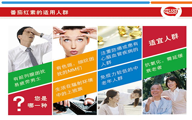 國內(nèi)外科學(xué)家半個(gè)世紀(jì)的研究表明:前列腺中番茄紅素濃度的缺乏,使其無法抵御自由基的侵蝕,前列腺細(xì)胞發(fā)生裂變、老化而病變。由于人體自身無法合成番茄紅素,隨年齡增長,番茄紅素的需求量也越大,從日常膳食中也很難獲取人體所需要的攝入量。因此,補(bǔ)充外源性番茄紅素成為防止前列腺疾病最有效的手段。
