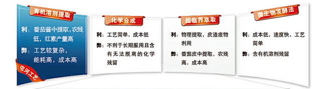 以有機(jī)溶劑為萃取介質(zhì)制備,成本高;紅素純度高,以果肉為原料,避免了農(nóng)藥殘留及重金屬污染。