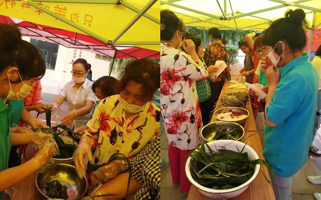 籌備期, 中宜國糧提供了包粽子的各項(xiàng)原料:大米、粽葉、棗等安全放心食材,社區(qū)購買了一次性口罩、手套等,各位工作人員攜手對(duì)原材料進(jìn)行了初步的加工處理。活動(dòng)中,中山大街社區(qū)專門邀請(qǐng)了職業(yè)培訓(xùn)機(jī)構(gòu)的老師教大家包粽子。 中宜國糧的工作人員們、社區(qū)居民和黨員干部捋粽葉、填餡心、裹粽子,大家忙得不亦樂乎。嫻熟的技術(shù)、靈巧的雙手,一個(gè)個(gè)鮮綠的粽子一一呈現(xiàn)。