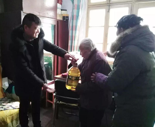 2018年1月29日下午, 中宜國糧徐州分公司后勤主任徐偉、褚楊楊經(jīng)理、人事莊偉等一行人來到泉山區(qū)黃北社區(qū),在社區(qū)主任胡主任的帶領下來到黃河新村慰問困難老人,并為他們送上了過年的米、面、油等生活物資。社區(qū)胡主任代表居委會對中宜國糧表示了感謝,并熱切邀請中宜國糧參與社區(qū)的樓長會。