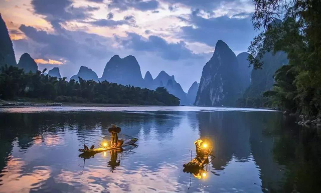 五月,桂林剛剛開始進(jìn)入豐水期,乘著竹筏,飄蕩在漓江之上,聽漁舟唱晚,賞落日夕陽,著實(shí)是一種精神上的享受。