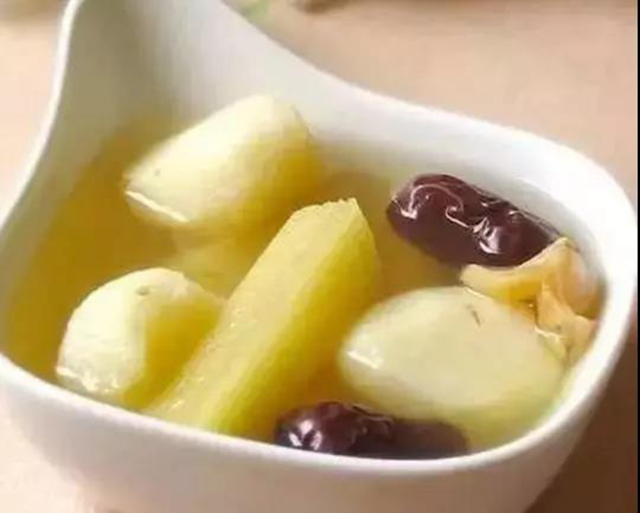 先將甘蔗去皮切塊,馬蹄洗凈去皮,然后一起放入砂鍋(還可加入紅棗和姜彌補(bǔ)甘蔗和馬蹄的寒性),加適量清水,大火煮開(kāi)后,小火繼續(xù)熬煮30分鐘,濾去雜質(zhì)即可飲用。