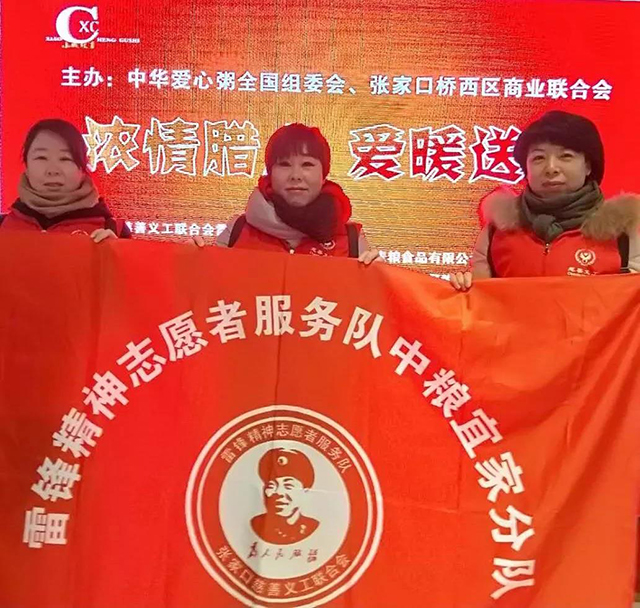 “臘八節(jié)”是一年一度的傳統(tǒng)節(jié)日,在這一天,我國大多數(shù)地區(qū)都有吃臘八粥的習(xí)俗。今年的臘八節(jié),張家口慈善義工聯(lián)合會(huì)雷鋒精神志愿者服務(wù)隊(duì)受《中華志愿者》雜志社邀請(qǐng),聯(lián)合我市愛心企業(yè)舉辦“濃情臘八,愛暖送粥”活動(dòng)。中宜國糧張家口分公司作為雷鋒志愿者隊(duì)中宜國糧分隊(duì)欣然加入其中,為奮戰(zhàn)在一線的辛勤勞動(dòng)者送去愛心臘八粥。香濃的臘八粥,暖身更暖心。