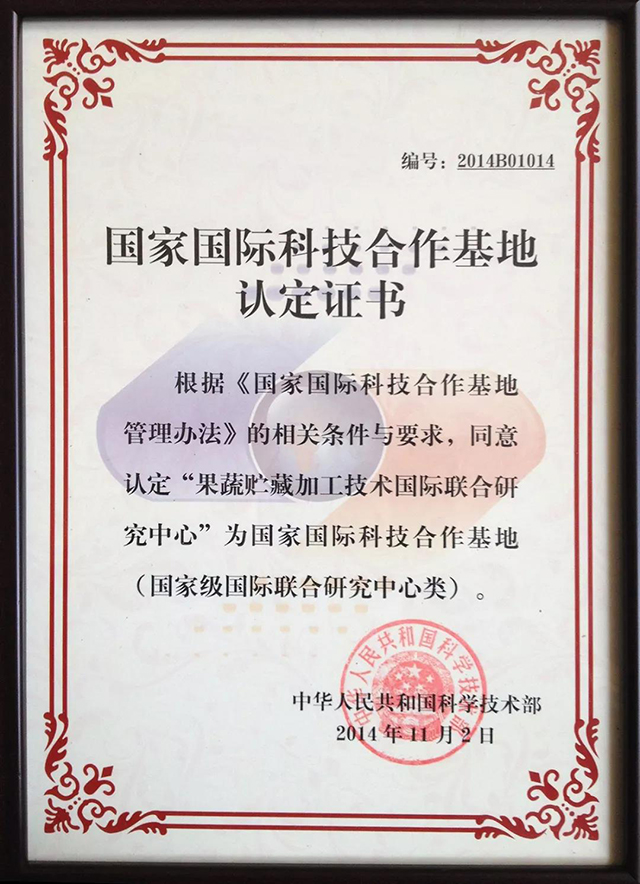 國(guó)家級(jí)果蔬貯藏加工技術(shù)國(guó)際聯(lián)合研究中心