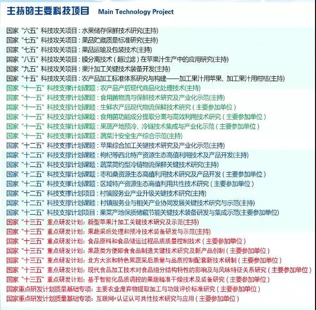 持續(xù)的創(chuàng)新投入,激發(fā)無(wú)限的科技潛能,濟(jì)南果品研究院先后承擔(dān)國(guó)家“六五”-“十三五”國(guó)家科技攻關(guān)或支撐計(jì)劃項(xiàng)目、國(guó)家重點(diǎn)研發(fā)計(jì)劃、國(guó)家高新技術(shù)產(chǎn)業(yè)化項(xiàng)目、農(nóng)業(yè)科技成果轉(zhuǎn)化資金項(xiàng)目、標(biāo)準(zhǔn)化公益研究、星火計(jì)劃等科研項(xiàng)目300多項(xiàng),獲得國(guó)家和省部級(jí)科技獎(jiǎng)勵(lì)60余項(xiàng)。在果蔬防霉保鮮、冷鏈流通、蔬菜采后加工增值、蘋果產(chǎn)業(yè)加工關(guān)鍵技術(shù)、果蔬濃縮汁及飲料、農(nóng)殘吸附脫除、果蔬下腳料綜合利用、特色果品高值利用、國(guó)家標(biāo)準(zhǔn)制修訂等方面取得了一系列重要科研成果,獲得多項(xiàng)國(guó)家和省部級(jí)科研獎(jiǎng)勵(lì)。