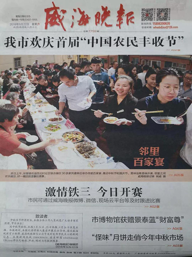 中宜國(guó)糧員工帶來了美味佳肴,還有優(yōu)質(zhì)的美滋滋堅(jiān)果,社區(qū)鄰里生活館的餃子宴更是錦上添花。社區(qū)居民準(zhǔn)備了精彩的文藝匯演,將現(xiàn)場(chǎng)氣氛推向高潮,用心的表演和精致的服化道也贏得了大家一致的掌聲與喝彩!活動(dòng)現(xiàn)場(chǎng),《直播威海》欄目對(duì)本次活動(dòng)進(jìn)行了報(bào)道 ,威海晚報(bào)也對(duì)本次活動(dòng)做了詳細(xì)報(bào)道。